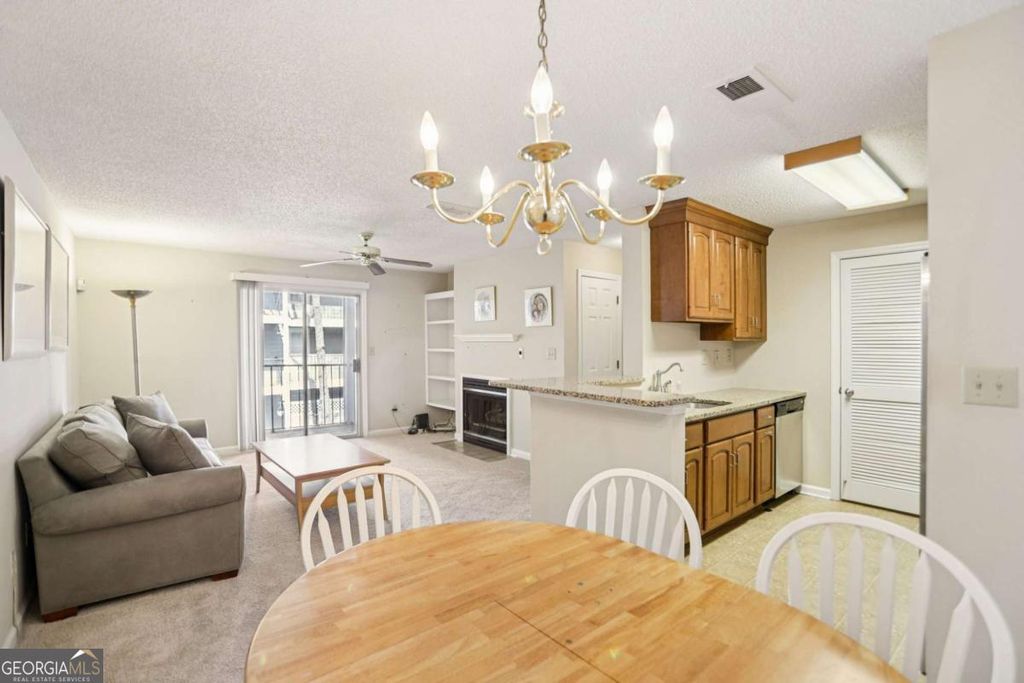 Best value in Sandy Springs at $179,000! Well-maintained 1BR/1BA condo (711 sq ft) located next to Mercedes-Benz North America headquarters and minutes to the Perimeter business corridor. Ideal for professionals, first-time buyers, or investors. Kitchen features stainless steel appliances, full pantry, and washer/dryer. Living room offers a gas fireplace and access to a private balcony with storage closet. Spacious bedroom with generous closet space. Deeded covered parking included. Gated, dog-friendly Granville community with elevator access, pool, and fitness center. HOA covers water, sewer, and gas. Leasing permitted ($500 HOA leasing fee). Walk to Costco and Trader Joe's. Quick access to GA-400, I-285, and Sandy Springs MARTA. Close to UPS HQ and major medical centers. Enjoy a strong employment base, vibrant dining scene, parks and trails, top medical access, and easy Atlanta connectivity. Low-maintenance living in a prime Sandy Springs location with excellent investment potential.